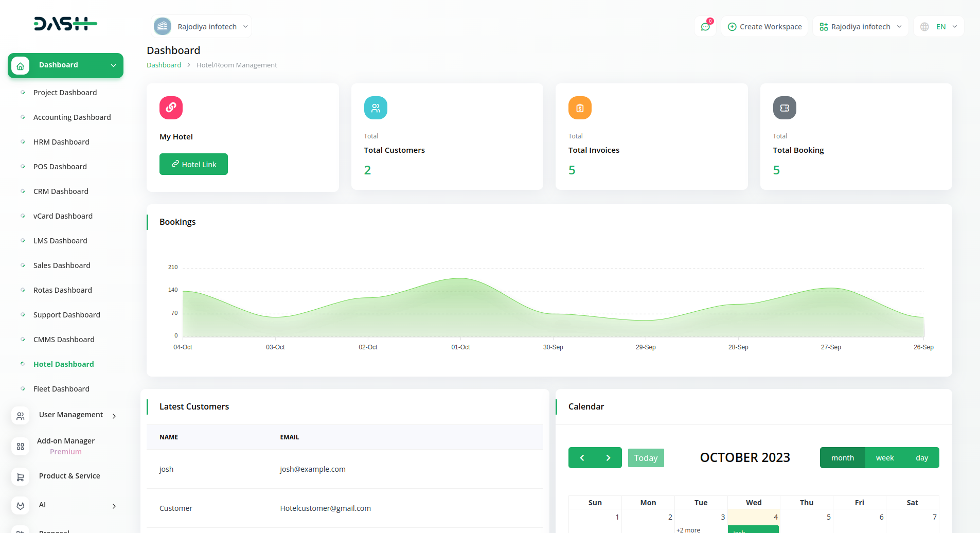 Manage every aspect of your business hotel&room management from one place. Monitor your hotel&room management, Room Booking invoice and customer from a single comprehensive dashboard.