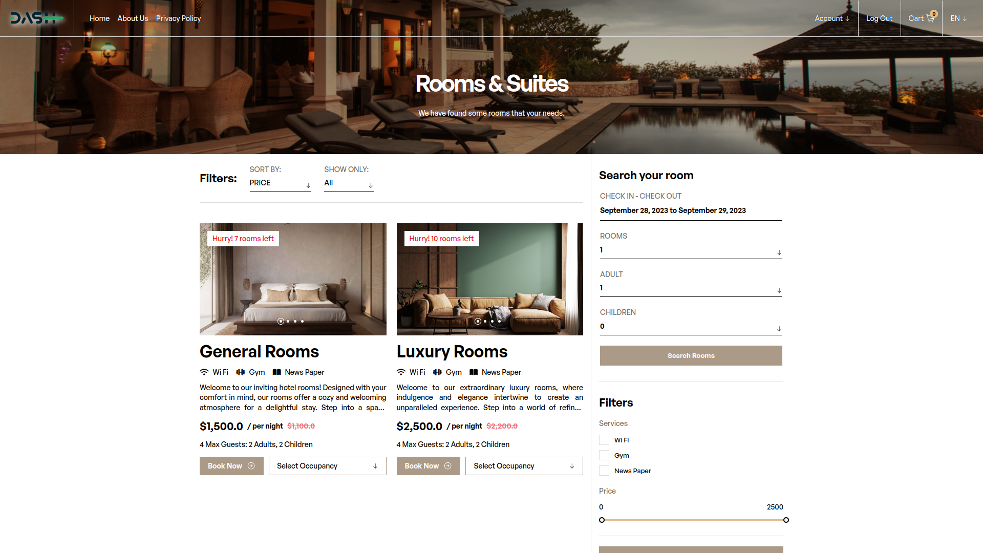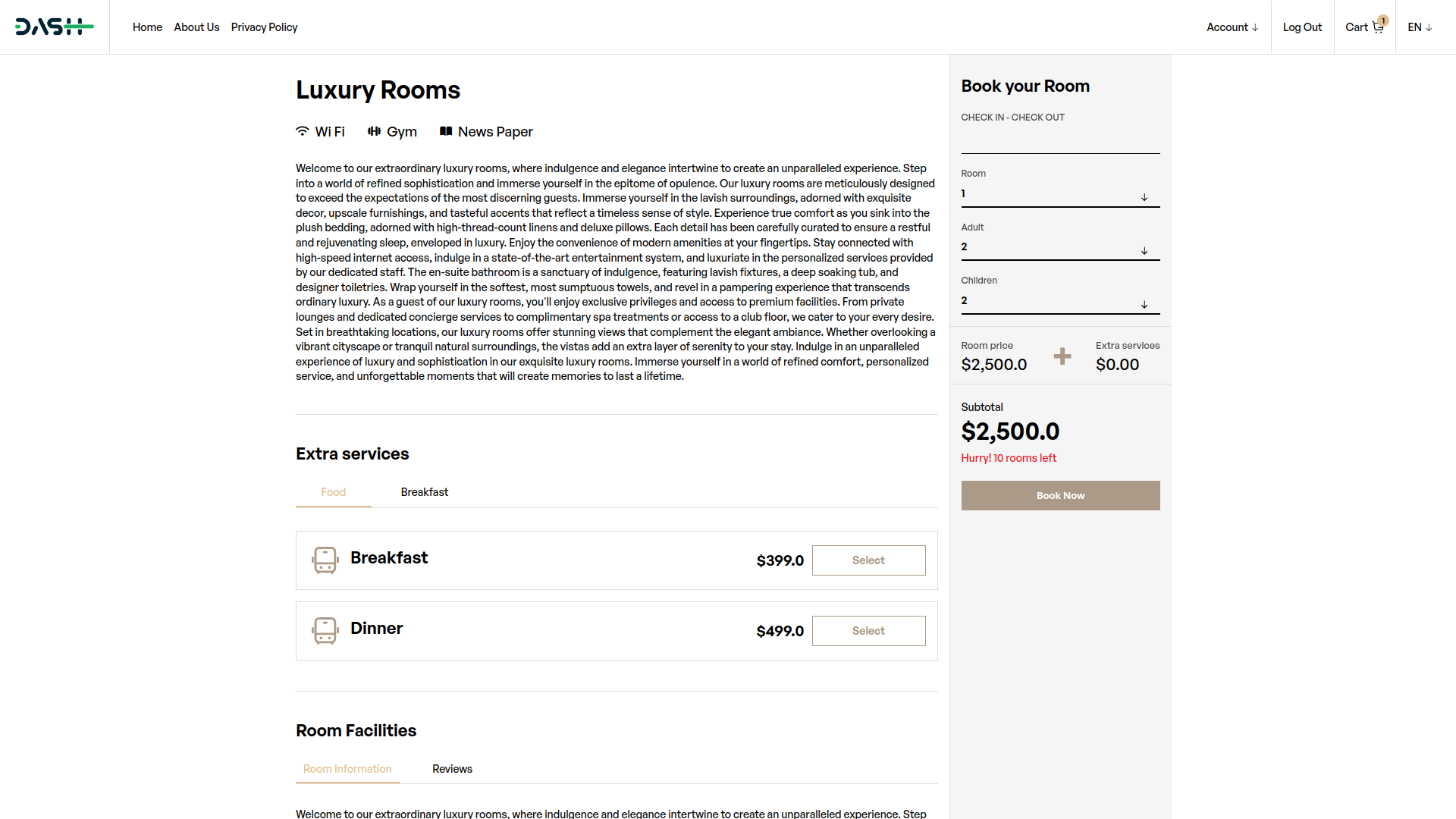 Make your Booking process fast and convenient for your customers. select date of when you want to stay in hotel room and select the room your customers want to stay and after click on Book Now.